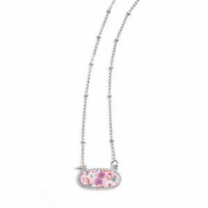 This 18-inch necklace features a delicate silver-plated bead chain that is lead- and nickel-free for comfortable everyday wear. A smooth resin focal piece adds a modern, polished touch, making it perfect for layering or wearing on its own.