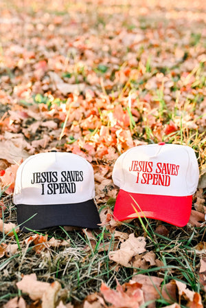 “Jesus Saves, I Spend” Hat in Pink Floral